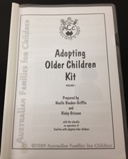 This is a guide for parents adopting or planning to adopt older children. It contains over 100 pages of advice, suggestions, personal notes and experiences relating to the adoption of older children. Published by Australian Families for Children.
